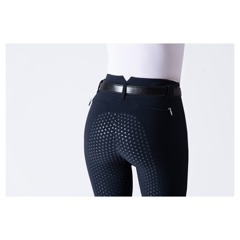 EGO7 Reithose Dressur FG. Damenreithose mit extra hohem Bund, schmeichelhaften Fronttaschen und Reißverschluss auf der Rückseite. Überlegene Leistung und Stil garantiert dank der Unterschrift Schnitt von italienischen Designern und die Verwendung der besten technischen Materialien für den Sport entwickelt.
