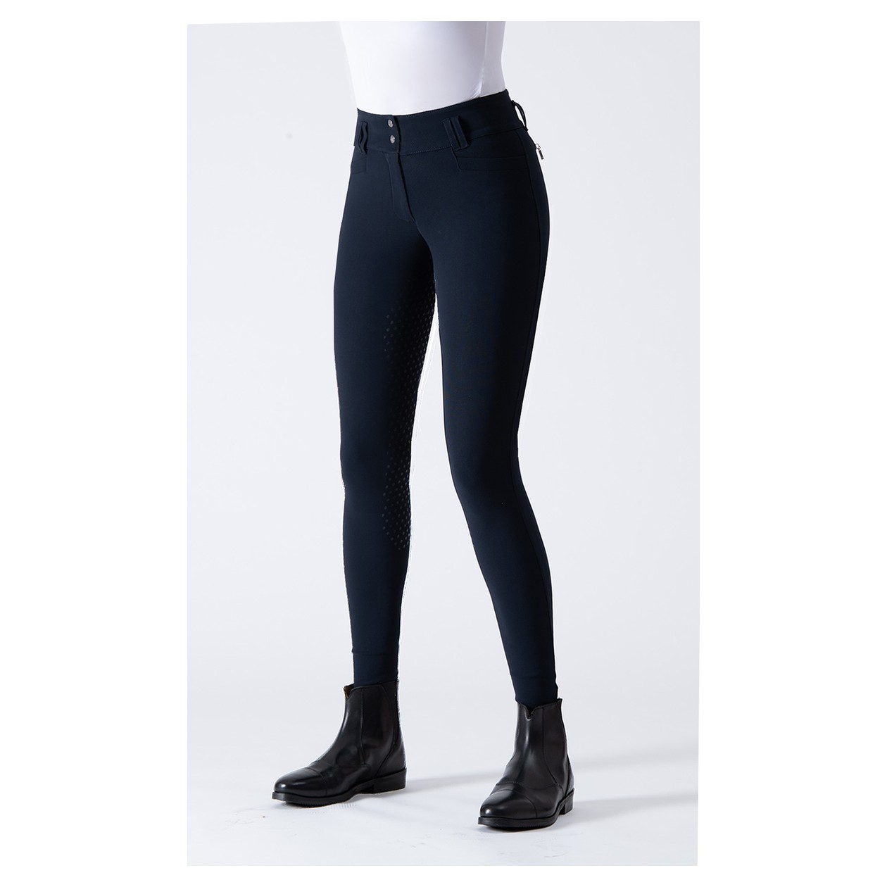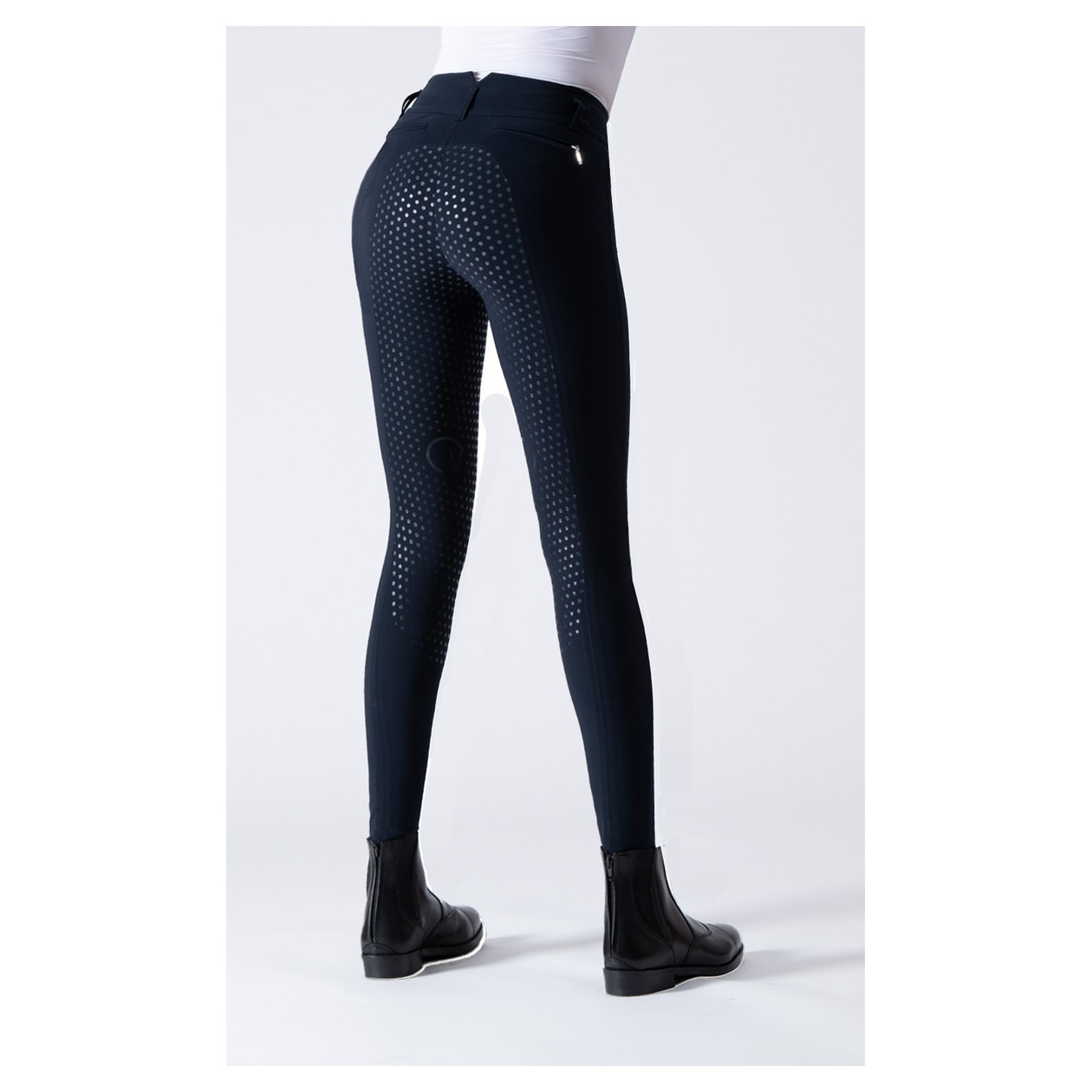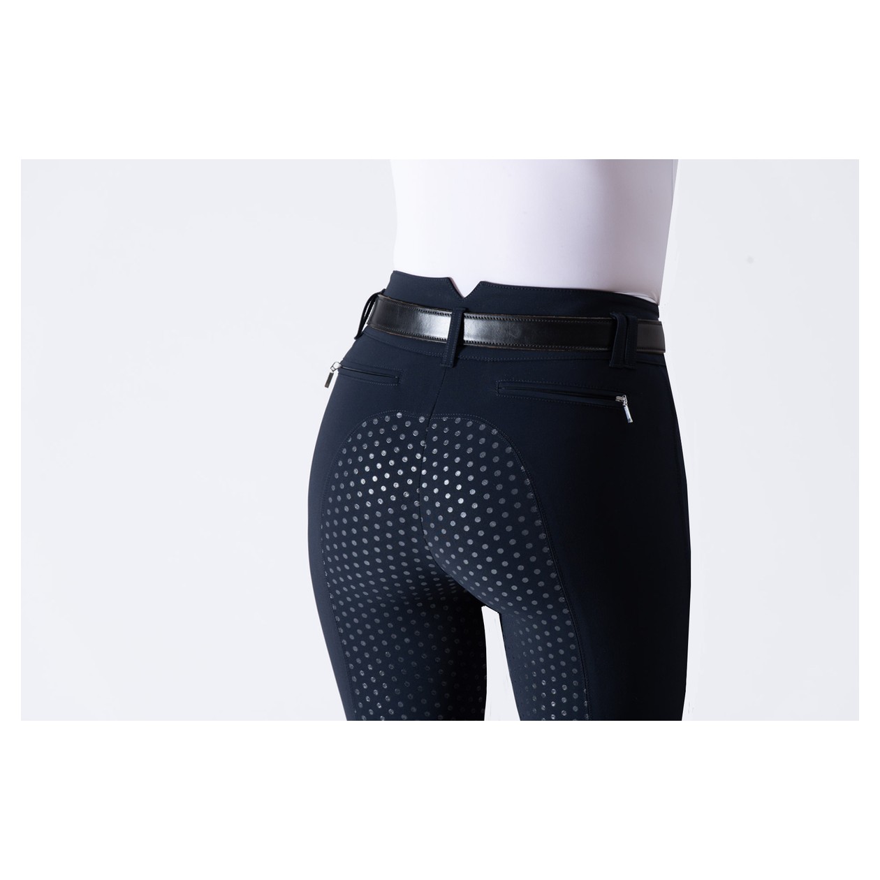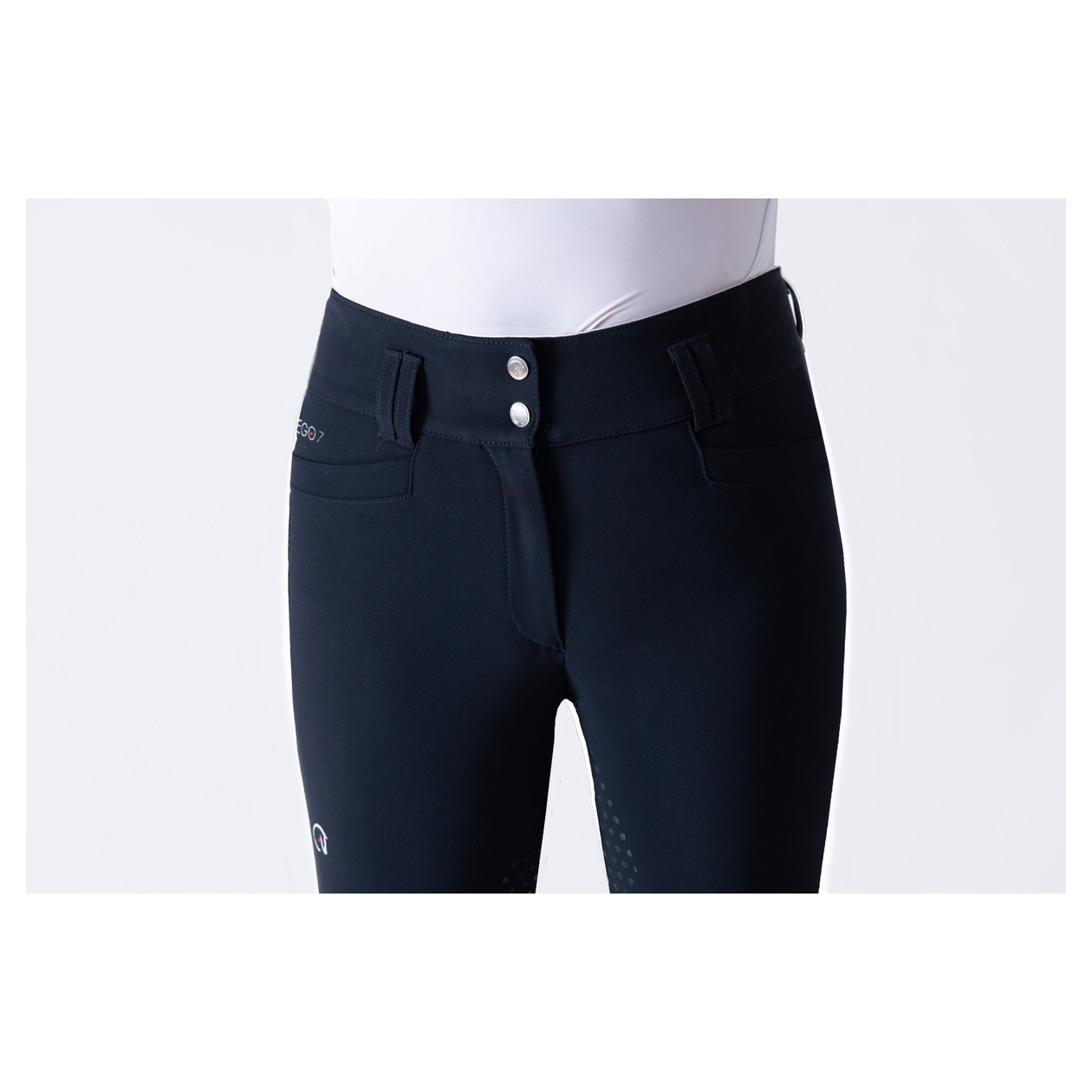 Das revolutionäre Material, 100% Jersey, hergestellt in Italien, sorgt für eine perfekte Passform mit Vier-Wege-Stretch für uneingeschränkte Bewegungsfreiheit, Unterstützung und Formbeständigkeit: ein nie dagewesener Komfort, Atmungsaktivität und besserer Kontakt mit dem Pferd beim Reiten. Ein modifizierter, extra hoher Bund sitzt vorne modisch hoch und steigt hinten an, um vollständige Bedeckung zu gewährleisten. Die EGO7-Reithosen sind mit dem neuen patentierten COBRAX-Knopf ausgestattet. Mit Vollgrip für außergewöhnliche Haftung, ideal für die Dressur. Auch die Innenseite des Bunds ist mit Grip versehen, um ein Verrutschen von Shirts zu verhindern.