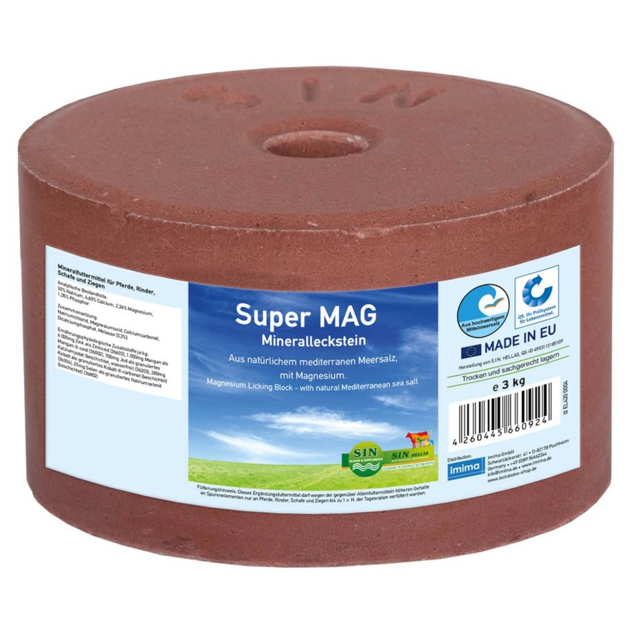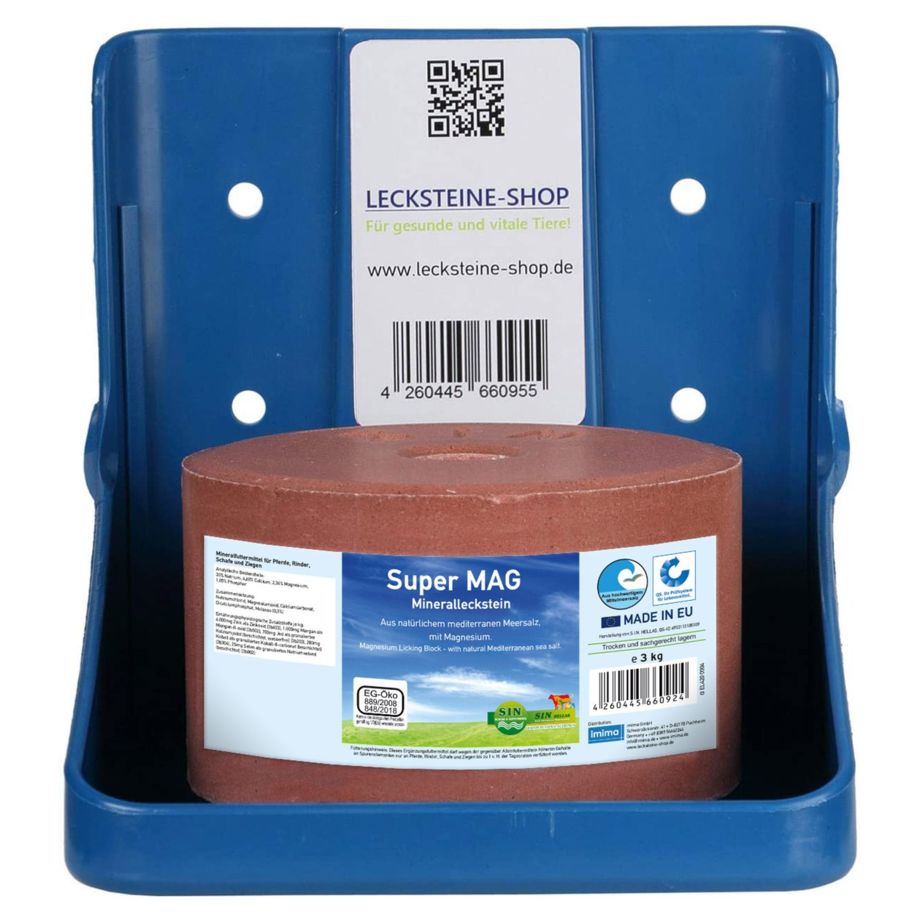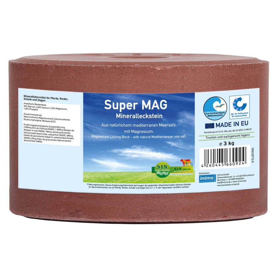 Der Mineralsalzleckstein Super MAG ist mit seiner spezielle Kombination von Magnesium, Calcium, Phospor und weiteren Mineralien eine ideale Ausgleichsquelle bei erhöhtem Magnesiumbedarf. Dieser besteht besonders bei Jungtieren, in Stresssituation, wetterfühligen Tieren und bei älteren Tieren.