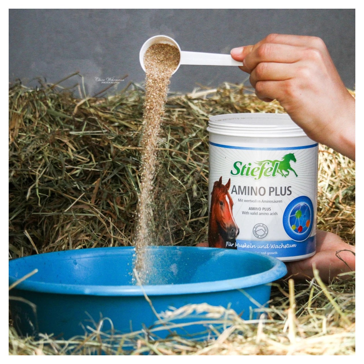 Stiefel Amino Plus wird zur Unterstützung des Muskelaufbaus und der Leistungsfähigkeit bei Sportpferden eingesetzt. Fohlen und Jungpferde können während der Wachstumsphase beim Aufbau von einem gesunden Knochengerüst mit Stiefel Amino Plus unterstützt werden. Auch ältere Pferde oder Pferde in Rekonvaleszenz können in Erhaltung und Aufbau von Stiefel Amino Plus profitieren.