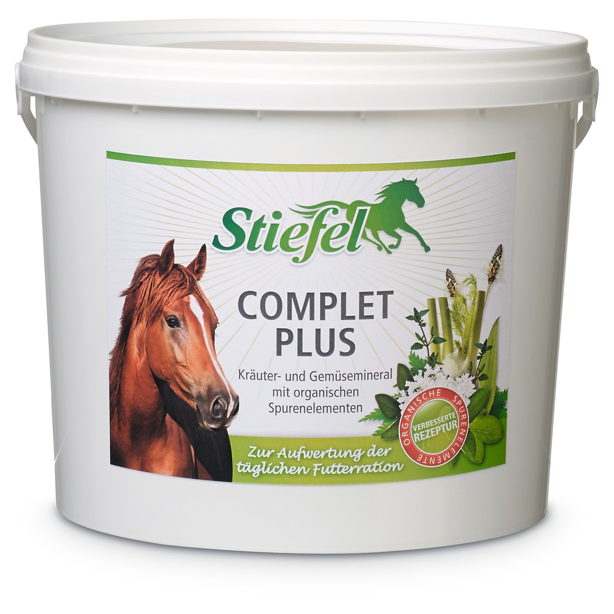 Stiefel Kräuter-Mineral ist ein Mineralfutter auf Kräuterbasis, das durch seine ausgewogene Zusammensetzung aus Kräutern, Möhrenflocken, Vitaminen und organischen Spurenelementen zur Verbesserung der Stoffwechselfunktion beitragen und den Organismus auf natürlicher Basis fit halten kann. Fütterungsbedingte Mangelerscheinungen können so ausgeglichen und die tägliche Grundfutterration optimal aufgewertet werden.