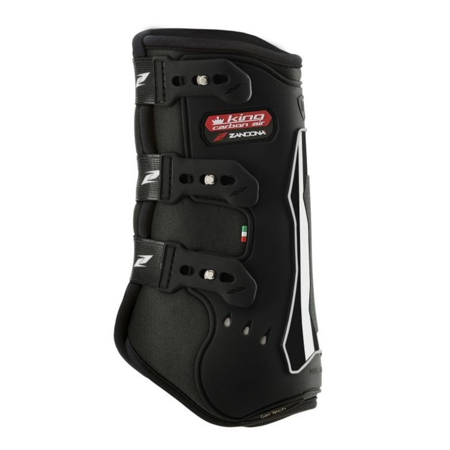 “KING CARBON AIR FRONT” sind die spezielle Gamaschen für den Dressursport. Die Gamaschen sitzen perfekt und schützen das Sehnensystem vor Aufpralle an den Fesseln sowie einem Großteil des Schienbeins. Sie sind mit einem revolutionären Schließsystem (Patent Pending) ausgestattet, das die Positionierung am Glied erleichtert. Dieses bietet eine perfekte Anpassung sowie Stabilität am Pferdebein und deutlich mehr Unterstützung im Vergleich zu herkömmlichen Gamaschen auf dem Markt.