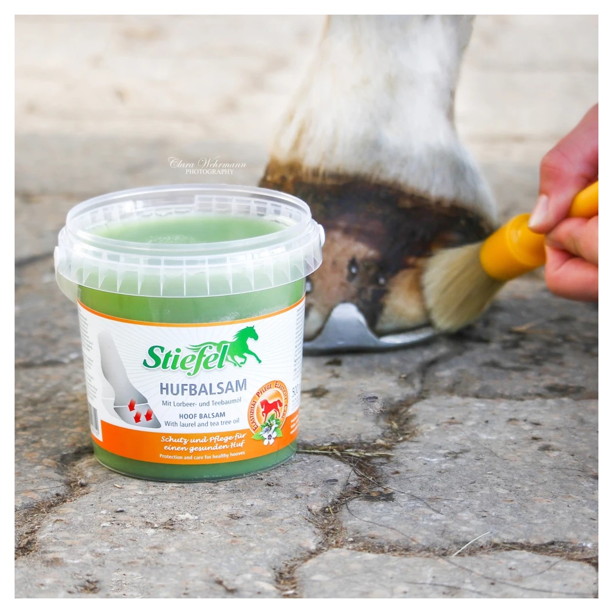 Stiefel Hufbalsam enthält essentielle Wirkstoffe und ätherische Öle für eine wirksame Hufpflege. Täglich angewendet können Hufstruktur, Elastizität und Beschaffenheit positiv unterstützt werden.Brüchigen und rissigen Hufen wird durch die feuchtigkeitsregulierende Wirkung vorgebeugt. Strahl und Kronrand werden gepflegt, bleiben geschmeidig und elastisch.