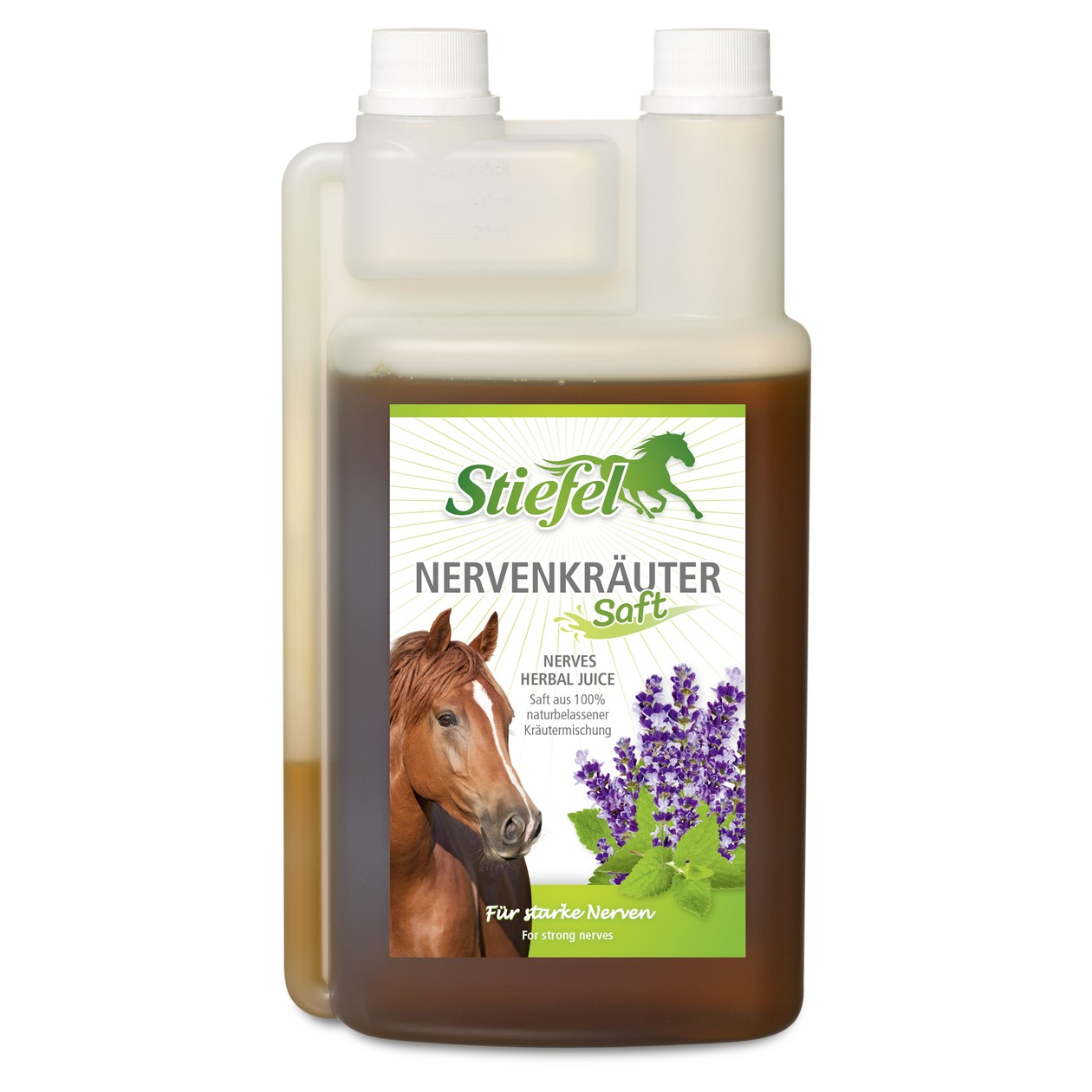 Stiefel Nervenkräutersaft ist ein Kräutersaft aus einer natürlichen Kräutermischung ohne künstliche Aromastoffe zur Fütterung in Belastungssituationen, bei Nervosität oder Gereiztheit. Die Kräuter können sich positiv auf das Nervenkostüm des Pferdes auswirken und so in aufregenden Situationen für mehr Ruhe und Gelassenheit sorgen.