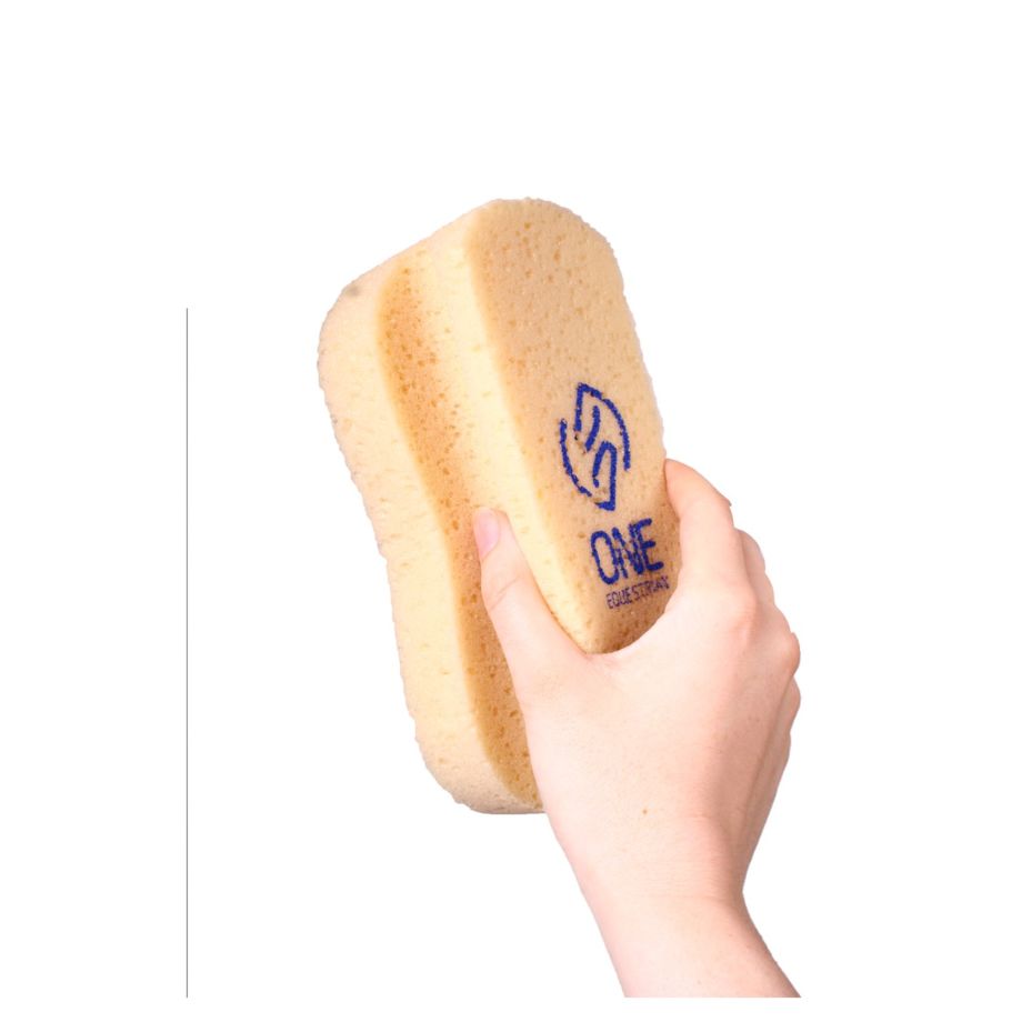 Der Schwamm mit Griff von One Equestrian eignet sich ideal für eine intensive Pferdewäsche. Durch den integrierten Griff im Schwamm lässt er sich gut festhalten und ist somit ganz leicht in der Anwendung. Auch Kindern fällt das Säubern mit diesem Schwamm leichter. Er hat eine geringere Dichte und saugt Wasser gut auf. Die runden Ecken sind dabei besonders angenehm für das Pferd. Auf der oberen Seite des Schwammes befindet sich das Logo von One Equestrian.