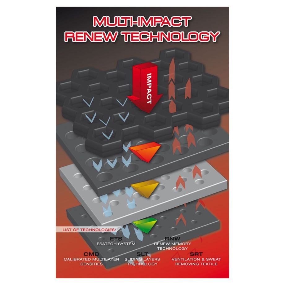 - Innenpolsterung aus E.V.C. (Evoluted Viscoelastic Cells), innovativer wasserabweisender Anti-Schock-Gummi mit einem hohen Verhältnis von Leistung / Gewicht / Stärke;