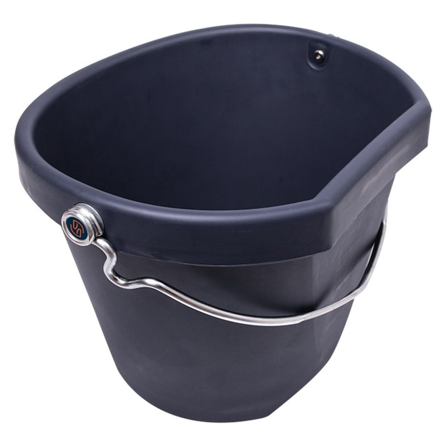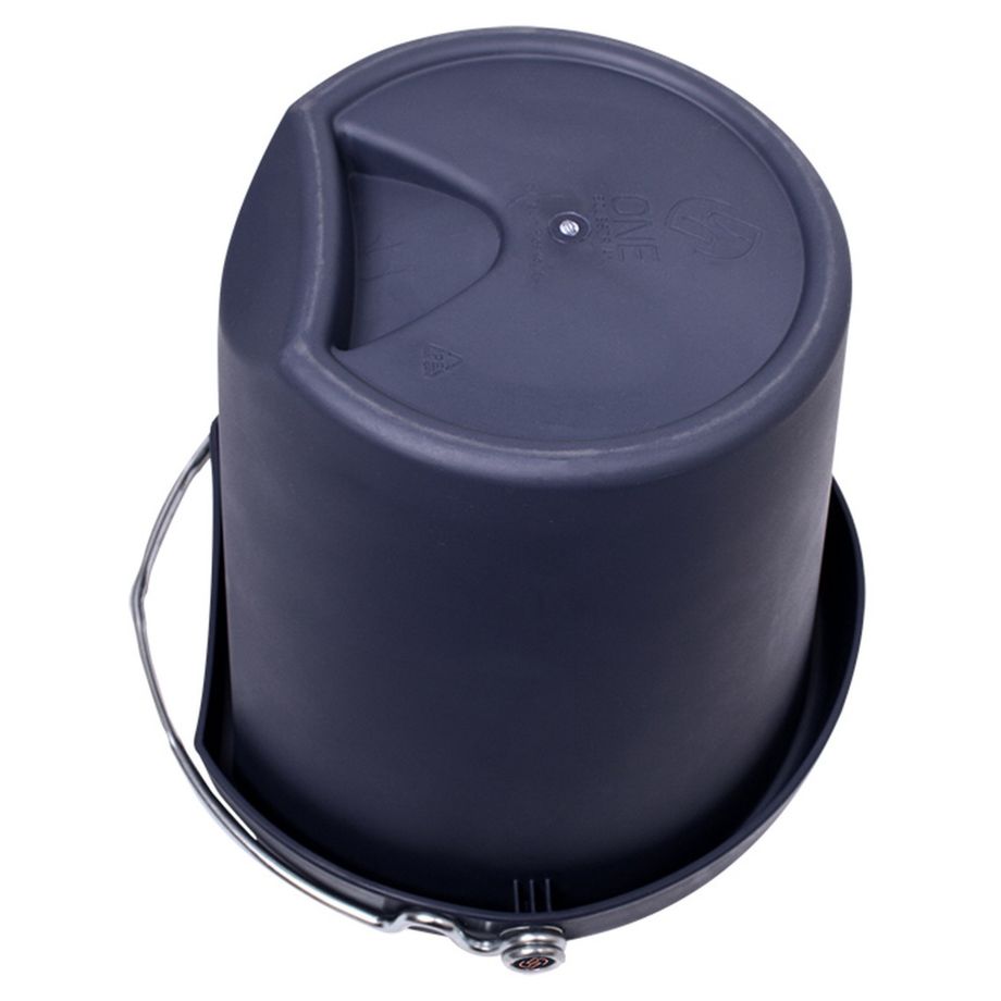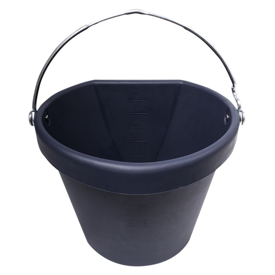 Der Eimer von One Equestrian besticht durch seine vielseitige Einsetzbarkeit. Hergestellt ist der Eimer aus recyceltem Kunststoff, somit ist er unzerbrechlich und kann bei Pferden ohne Bedenken eingesetzt werden. Die abgeflachte Rückseite sorgt für ein stabiles Aufhängen und eignet sich deshalb ideal für Pferde zum Fressen oder Trinken. Die abgerundeten Ecken verhindern Verletzungen bei Pferd und Reiter. An der Unterseite des Eimers ist ein Griff eingebaut, welcher das Auskippen des Eimers erleichtert. Der Griff des Eimers ist an der Oberseite abgeflacht und schneidet dadurch weniger in die Hand ein, wenn der Eimer gefüllt ist. Der Griff ist zusätzlich so gebogen, dass ein Wasserschlauch leicht darunter geklemmt werden kann. Er ist stapelbar und saugt beim Stapeln kein Vakuum ein. Dies verhindert die Entstehung von Schimmelbildung und sorgt für ein leichtes Auseinandernehmen der gestapelten Eimer. Auf der Innenseite ist ein Litermaß angebracht.