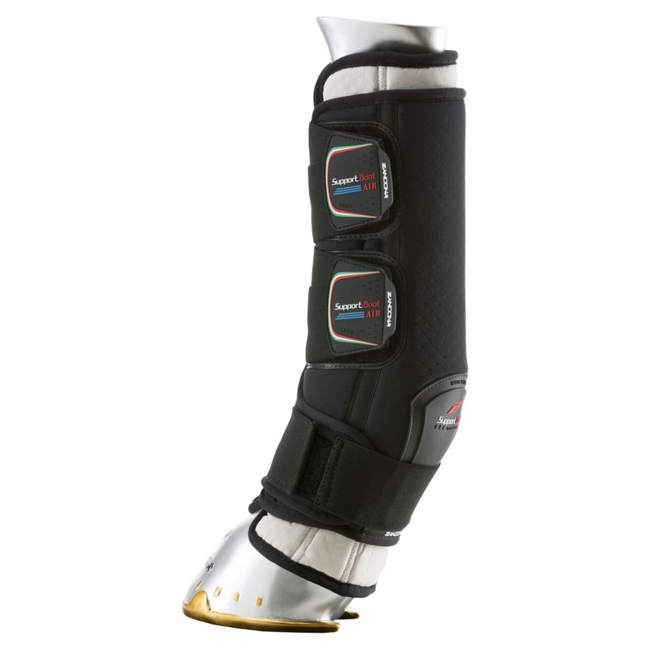 “SUPPORT BOOT AIR " sind die Ruhegamaschen, die in der Box verwendet werden. Sie wurden entwickelt, um die Bänder und Sehnen des Pferdes nach der Arbeit vor den typischen Schwellungen zu enthalten und stützen.“ SUPPORT BOOT AIR " ist eine wirkungsvolle und praktische Alternative zu den herkömmlichen Ruhebandagen, die gefährliche Fehler beim Umwickeln vermeiden helfen und Zeit sparen.