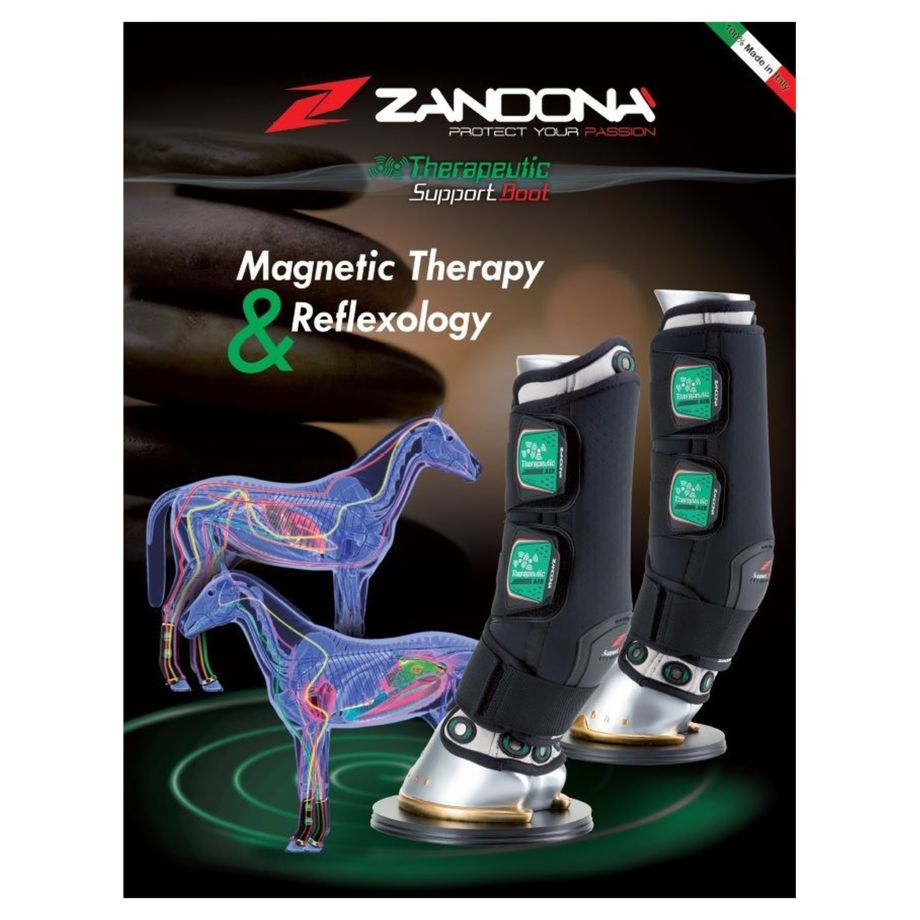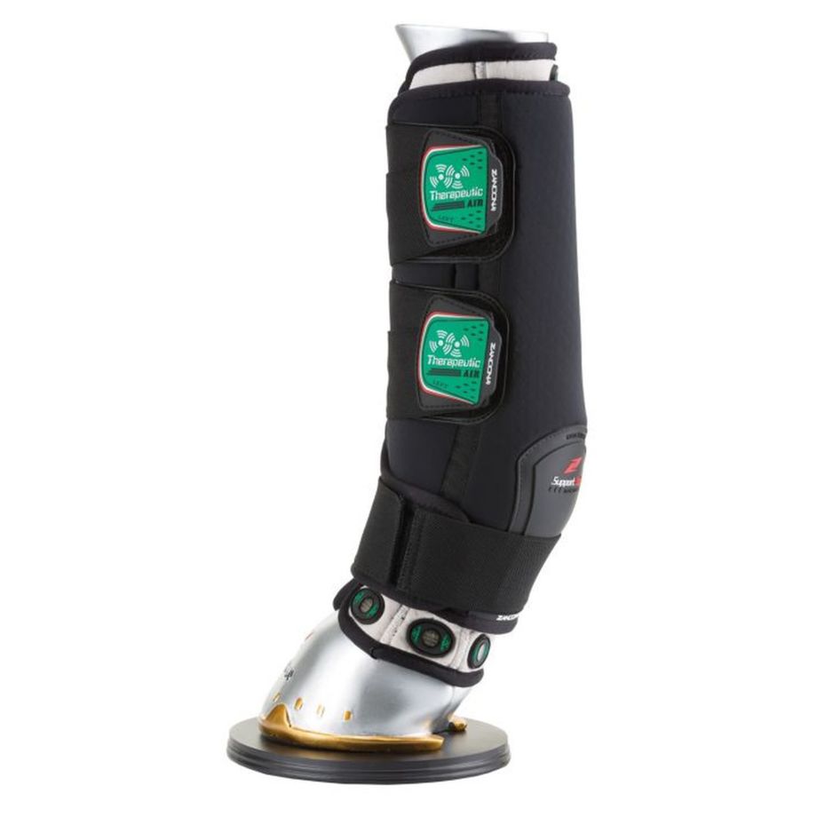Die Stall- und Transportgamaschen “THERAPEUTIC SUPPORT BOOT AIR” sind mit 18 Magneten ausgestattet, die die Zellfunktionen verbessern können und eine natürliche therapeutische Unterstützung von Huf bis zum Schienbein, sowie eine Reflexzonenmassage des gesamten Pferdes bieten.